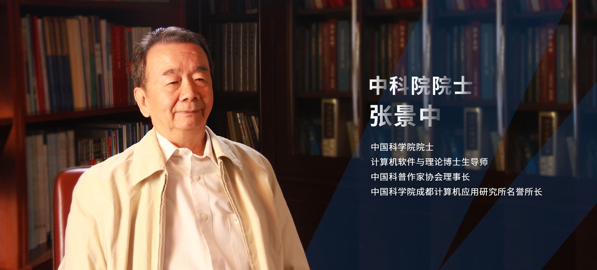 张景中,中国科学院院士,1959年毕业于北京大学数学力学系。从事计算机科学、数学和数学教育研究。《计算机应用》期刊主编。在机器证明、教育数学、距离几何及动力系统等领域有贡献。其成果1982年获国家发明奖二等奖,1995年获中科院自然科学奖一等奖和中国图书奖,1997年获国家自然科学奖二等奖,2003年获全国科普创作奖一等奖、五个一工程奖和国家图书奖,2005年和2009年两次获国家科技进步奖二等奖。他提出了三角、几何、代数相互渗透的初等数学教学体系;提出了非ε语言的极限概念表述和实数理论的连续归纳法;发现了不用极限或无穷小建立微积分的基本理论和方法。